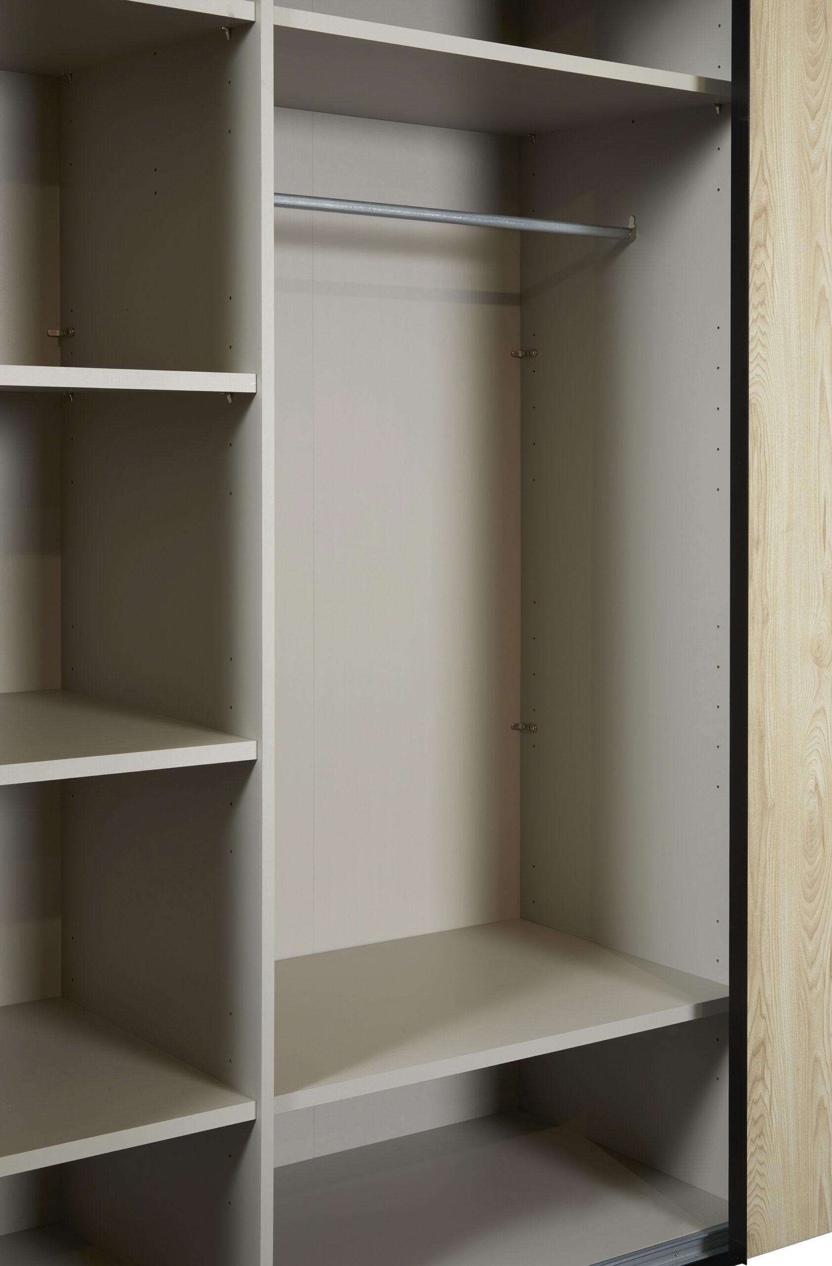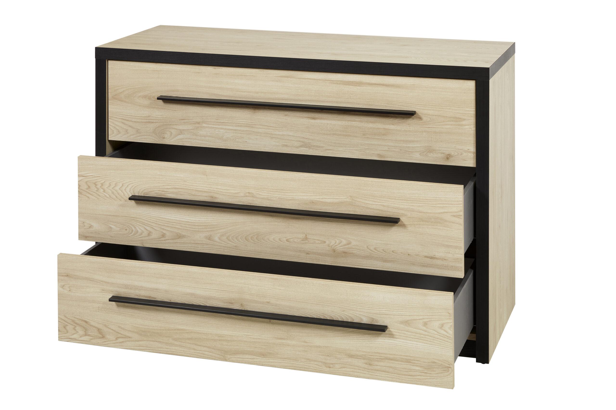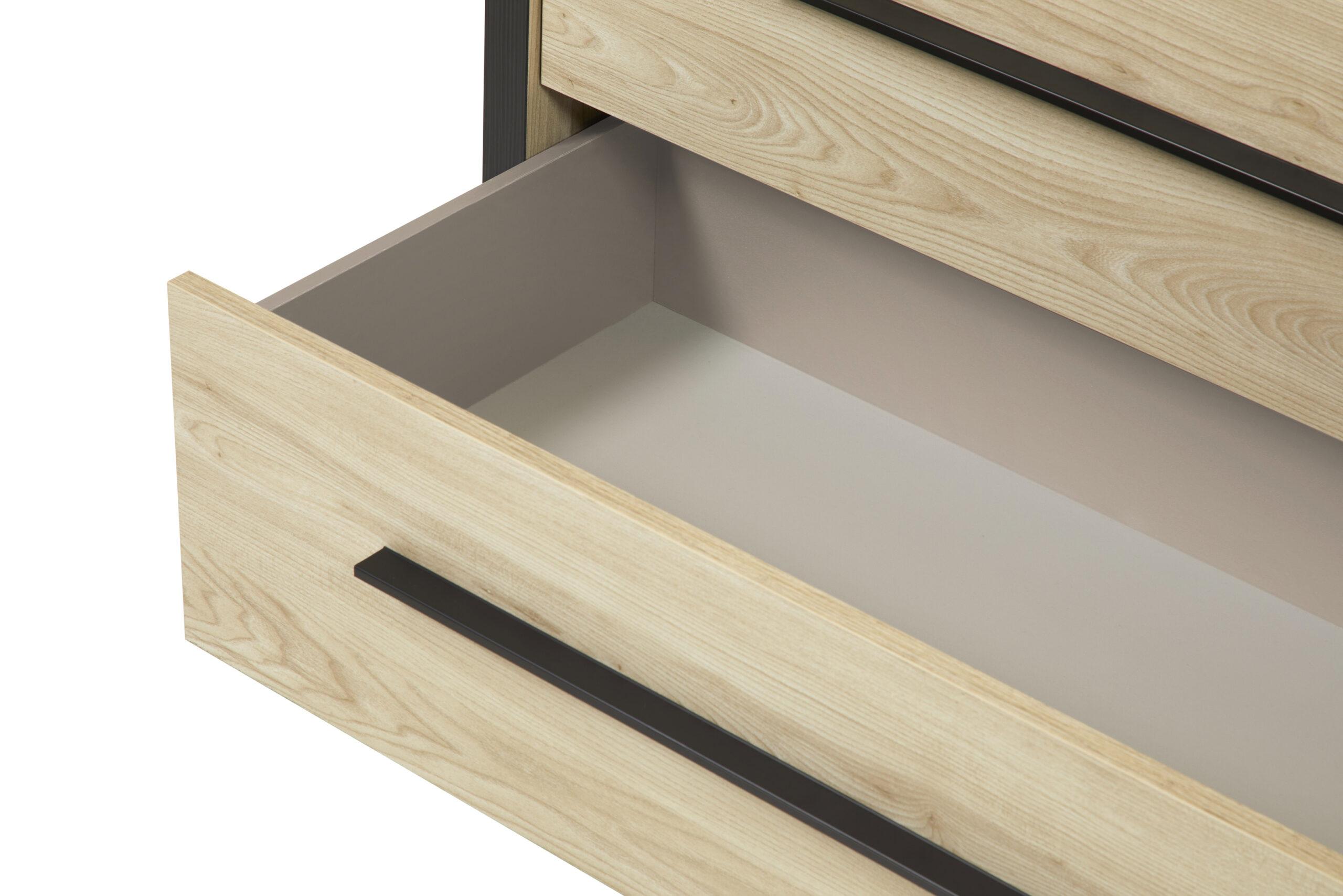 L’armoire spacieuse avec portes coulissantes et miroir intégré combine praticité et style, en apportant luminosité et profondeur à la pièce. La commode assortie complète parfaitement l’ensemble avec ses rangements fonctionnels.