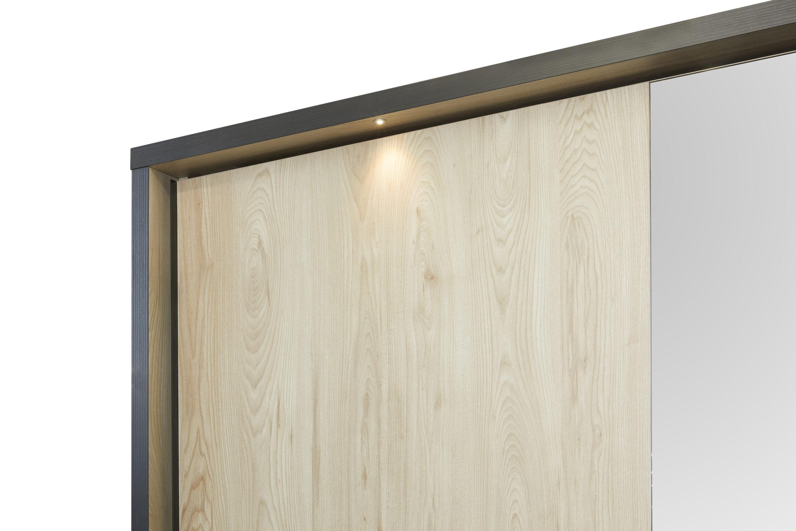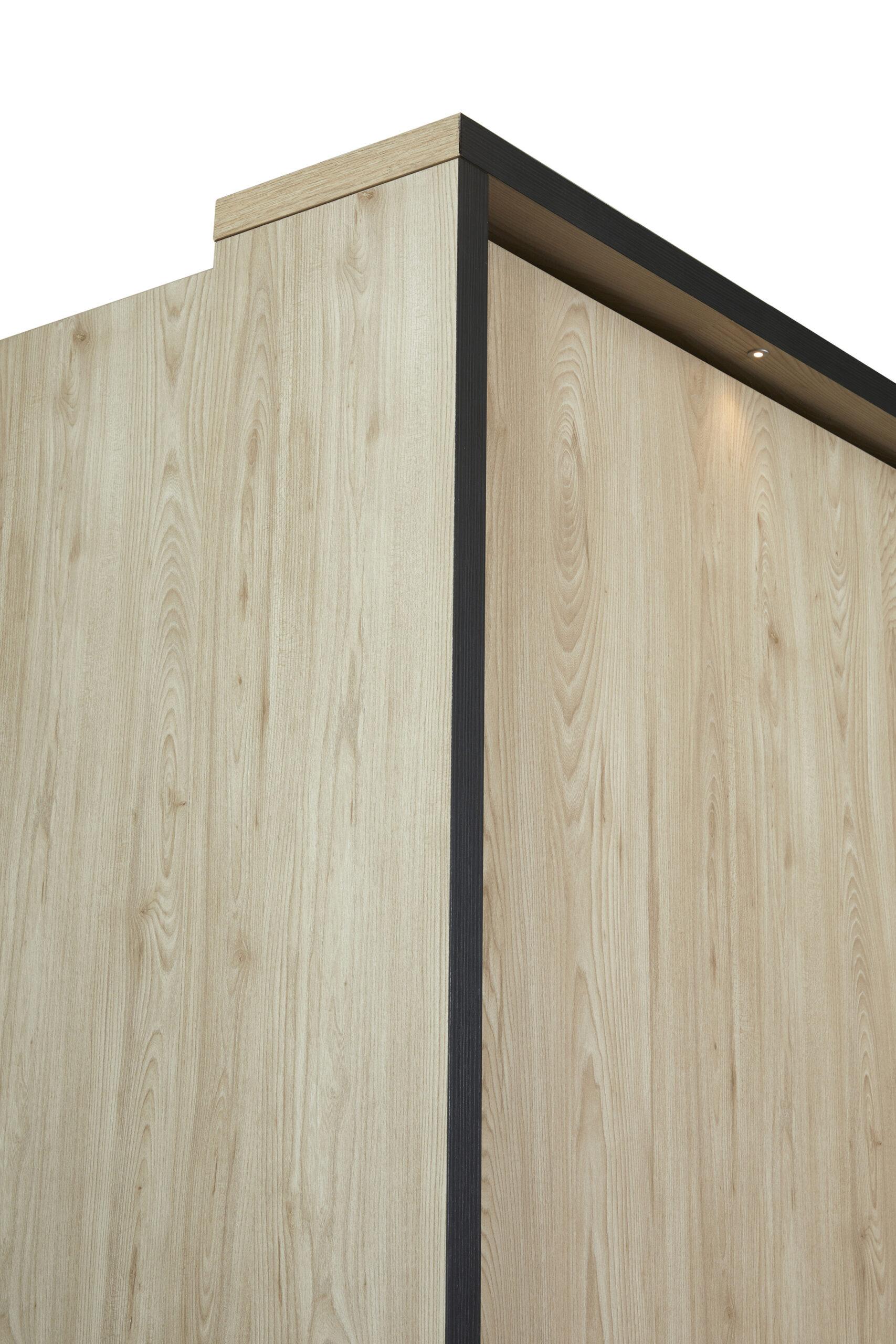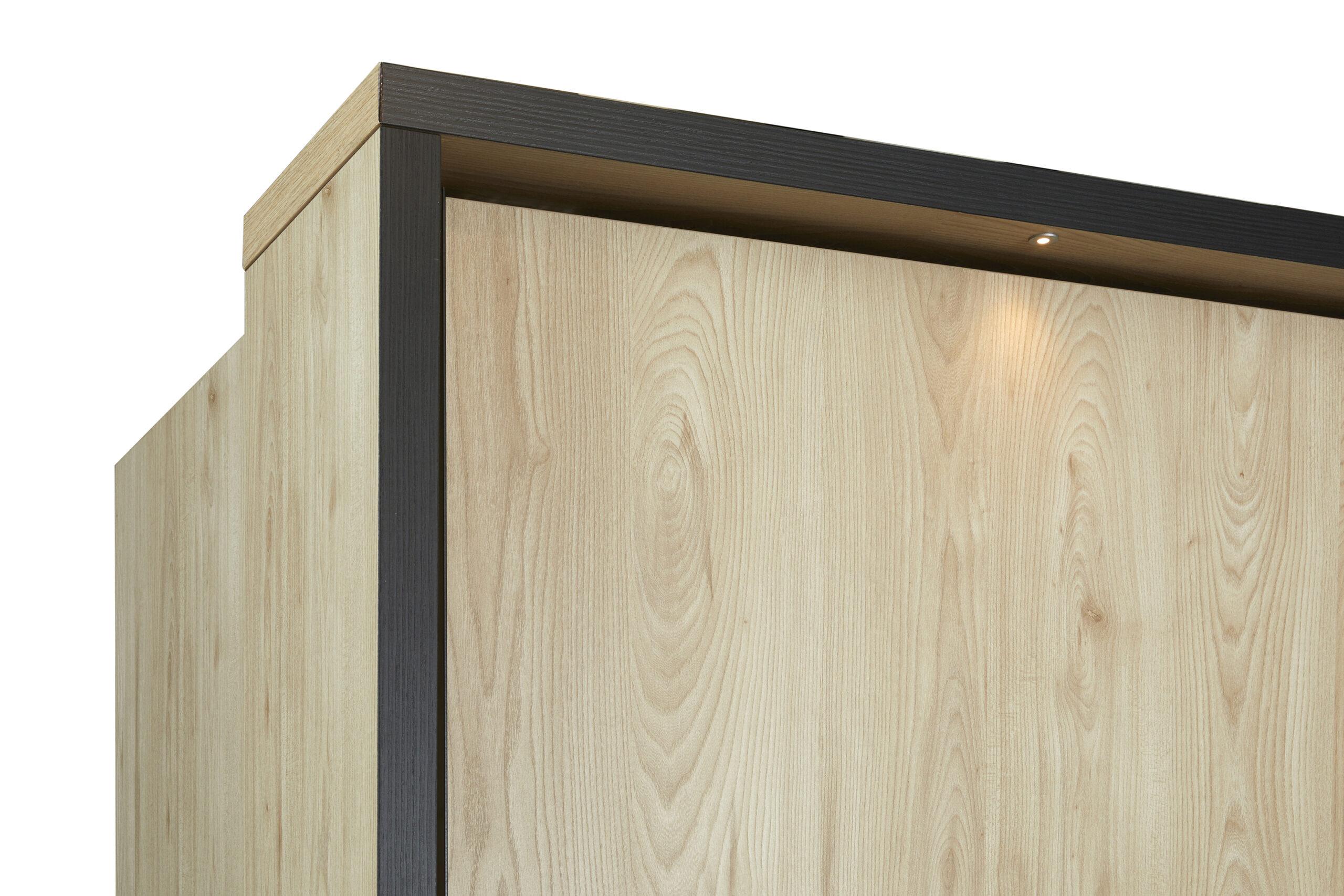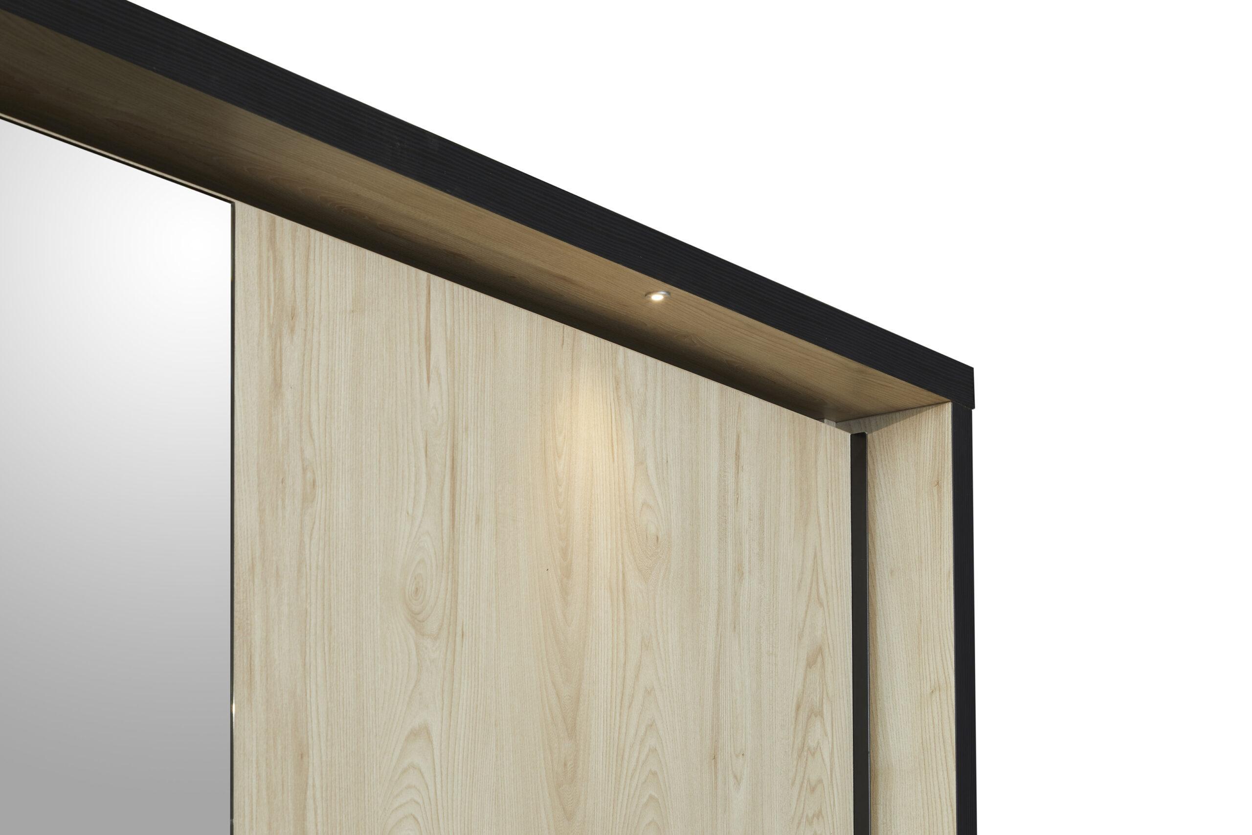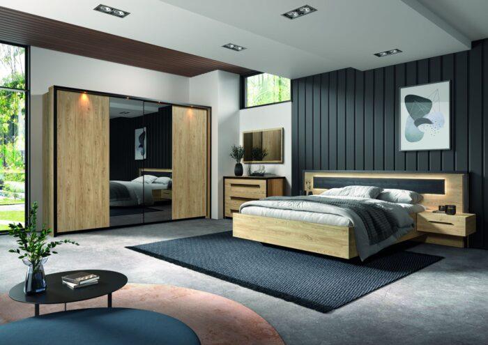Chambre moderne en bois naturel avec éclairage LED intégré